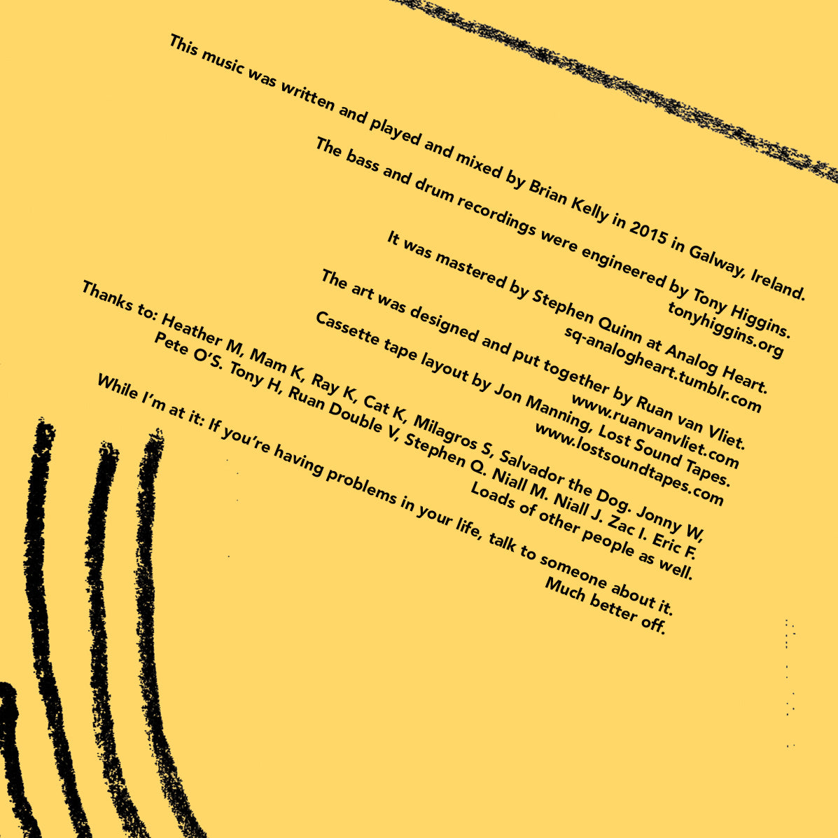 Edition of 100 clear blue cassette tapes with tape formatted color artwork and digital download code. Cover art designed by Ruan Van Vliet. Also available on CD/LP from Jigsaw Records (jigsaw-records.com) and Tall Pat Records (tallpatrecords.com).