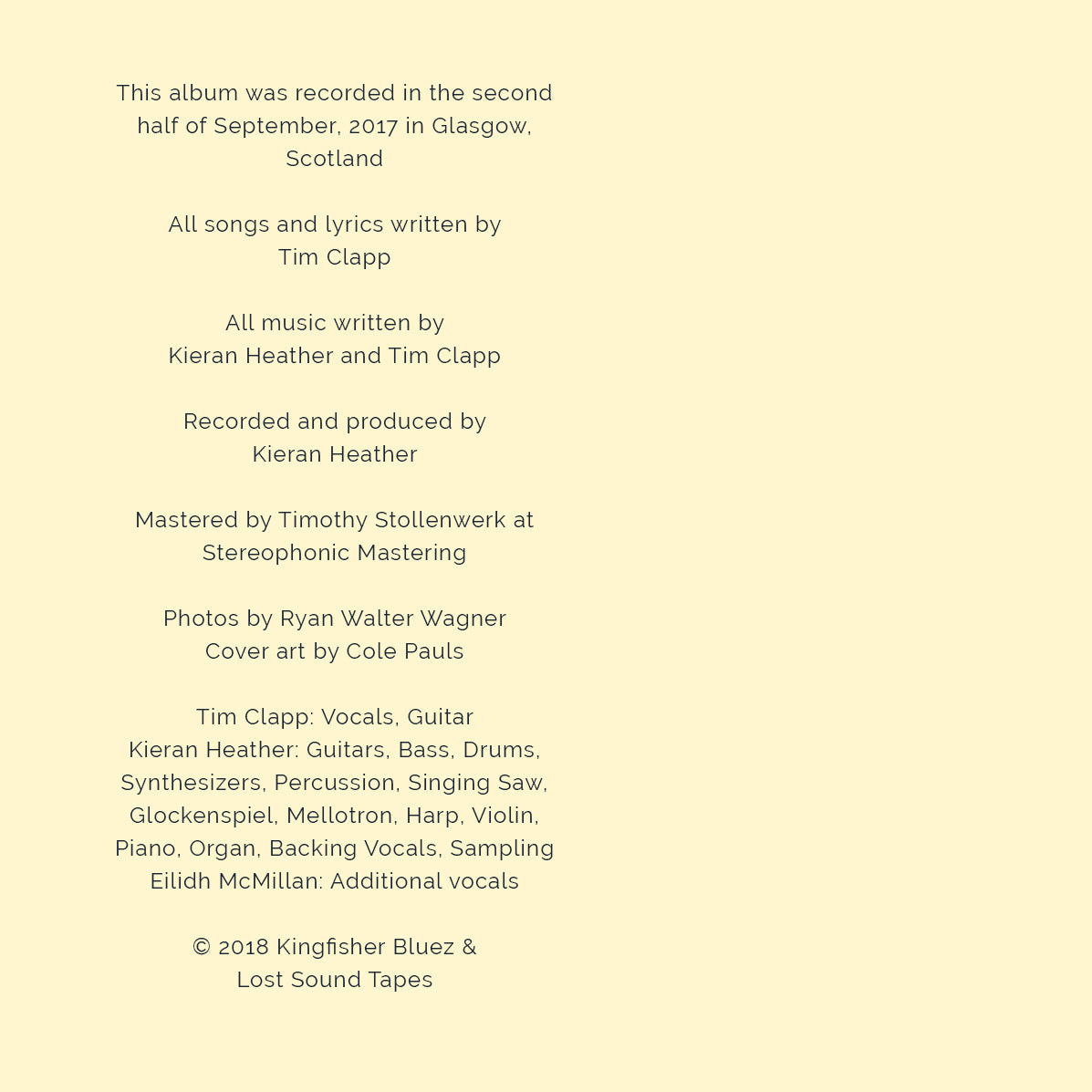Kieran Heather: Guitars, Bass, Drums, Synthesizers, Percussion, Singing Saw, Glockenspiel, Mellotron, Harp, Violin, Piano, Organ, Backing Vocals, Sampling